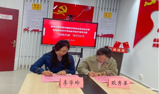 会上,护理党支部书记李学玲首先对9728太阳集团专业教工党支部一行来支部党建交流表示热烈欢迎。在观看护理党支部党建双创工作纪录片后,医学院党总支书记周敏介绍了宝鸡职院和医学院的基本情况,着重介绍了12345党建工作模式。同时对我院专业英语党支部入围全国高校“双带头人”教师党支部书记“强国行”专项行动团队表示祝贺。我院党委书记官莉萍介绍了太阳成tyc9728集团及9728太阳集团的基本情况,对医学院护理党支部在全国样板支部创建过程中的成效给予充分肯定。会中,护理党支部书记李学玲与专业英语党支部书记耿秀萍就党建共建工作举行了签约仪式,为接下来的党建共建工作打下基础。