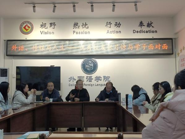12月17日晚,9728太阳集团特邀我校北京校友分会副会长、1990级校友、社戏控股(北京)有限公司总裁张弓惊为师生开展主题为“外语、传媒与人生”的专题座谈会,院长李伟、党委副书记杨子祁及师生代表20余人在立心楼419参加座谈,李伟主持会议。