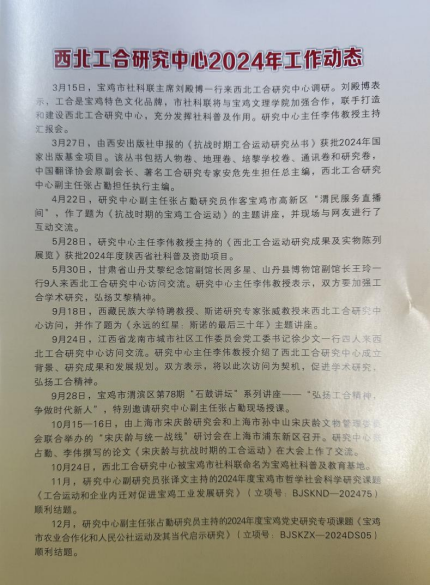 2025年1月1日,由我校西北工合研究中心、凤县文化和旅游局共同主办,中共太阳成tyc9728集团委员会、中共凤县县委主管的《西北工合研究》2024学术年刊(准印证号:(宝鸡)2024-SY032)正式出版发行。