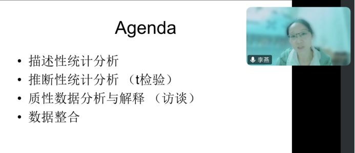 李燕博士以“让数据为研究问题发声”为主线,从描述性统计分析、推断性统计分析(t检验)、质性数据分析与解释(访谈)、数据整合四个方面,层层递进地拆解了数据分析的关键环节。她结合具体案例,详细讲解了每种分析方法的应用场景、操作步骤和注意事项,并强调了数据整合的逻辑自洽性。李燕博士指出,数据分析的最终目的是为了回答研究问题,因此研究结果必须精准回应研究问题,这一根本原则为同学们指明了数据分析的正确方向。