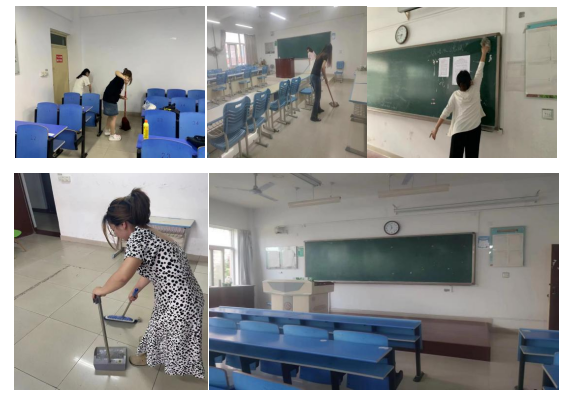 在“饮水思源 毕业党员先行动”清洁教室活动中,毕业生党员和在校生毕业党员分组打扫学院所有教室卫生,同志们各司其职,扫地、拖地、擦黑板、倒垃圾,认认真真清扫教室、走廊和楼梯间等公共区域,卫生死角一个也不放过,让每一个角落都焕然一新。