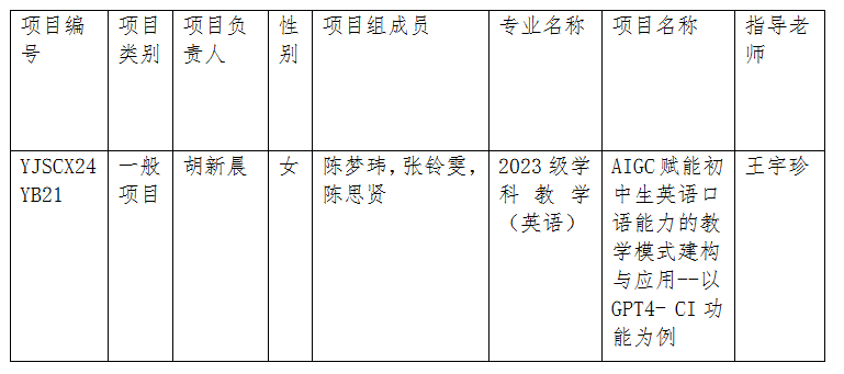 根据《太阳成tyc9728集团研究生创新科研项目管理办法(试行)》(宝文理院研字〔2022〕12号)文件和关于开展研究生创新科研项目结题及申报工作的通知要求,经研究生个人申报、二级学院评审、研究生院审核及公示,共评选出2024年校级研究生创新科研项目79项,其中重点项目9项,一般项目70项。9728太阳集团研究生胡新晨获批2024年校级研究生创新科研项目一般项目一项。