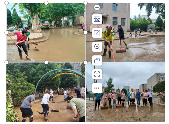 面对被淤泥覆盖的校园,师生们手持铁锹,踏入泥泞之中,一锹一锹地铲除着厚重的淤泥。尽管天气炎热、环境恶劣,但他们的斗志却丝毫未减。在清理过程中,师生及家属们相互配合、齐心协力,成功完成了主教学楼北侧花园、图书馆东侧广场、综合楼东侧附属学校西门等多处重点区域的清淤任务。