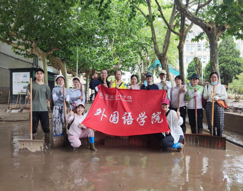 学院党委周密部署,连夜组建抗洪救灾突击队,迅速集结了30余名师生力量。在随后三天的清淤决战中,突击队规模不断壮大,最终有50多人投入到清淤一线,共同奋战在抗洪救灾的最前沿。