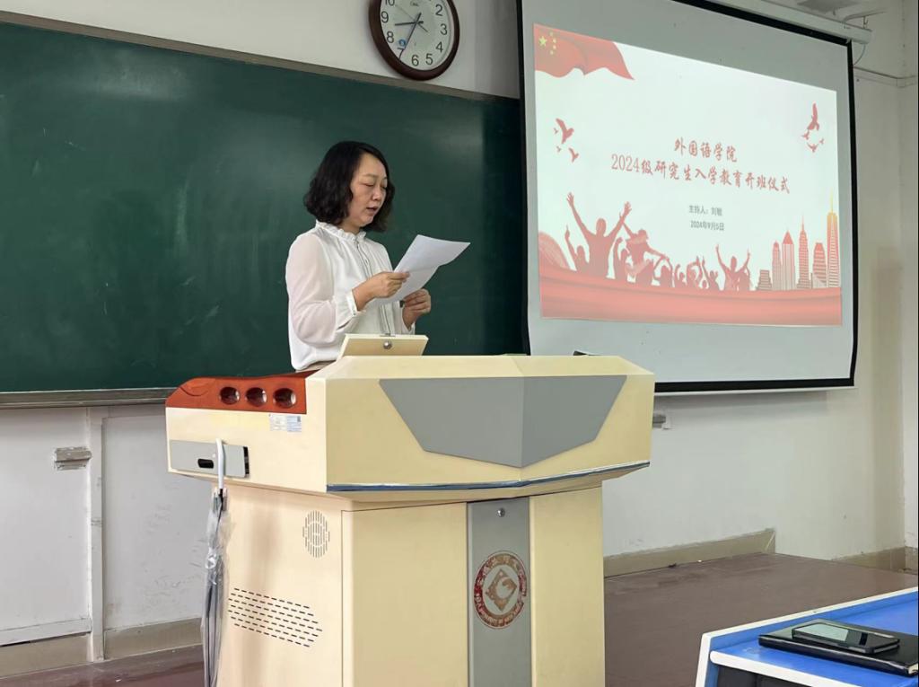 9月5日上午,2024级研究生入学教育开班仪式在立心楼425教室举行。副院长刘敏主持仪式,党委书记官莉萍、院长李伟,党委副书记杨子祁,研究生导师代表、辅导员及2024级全体研究生参加了仪式。