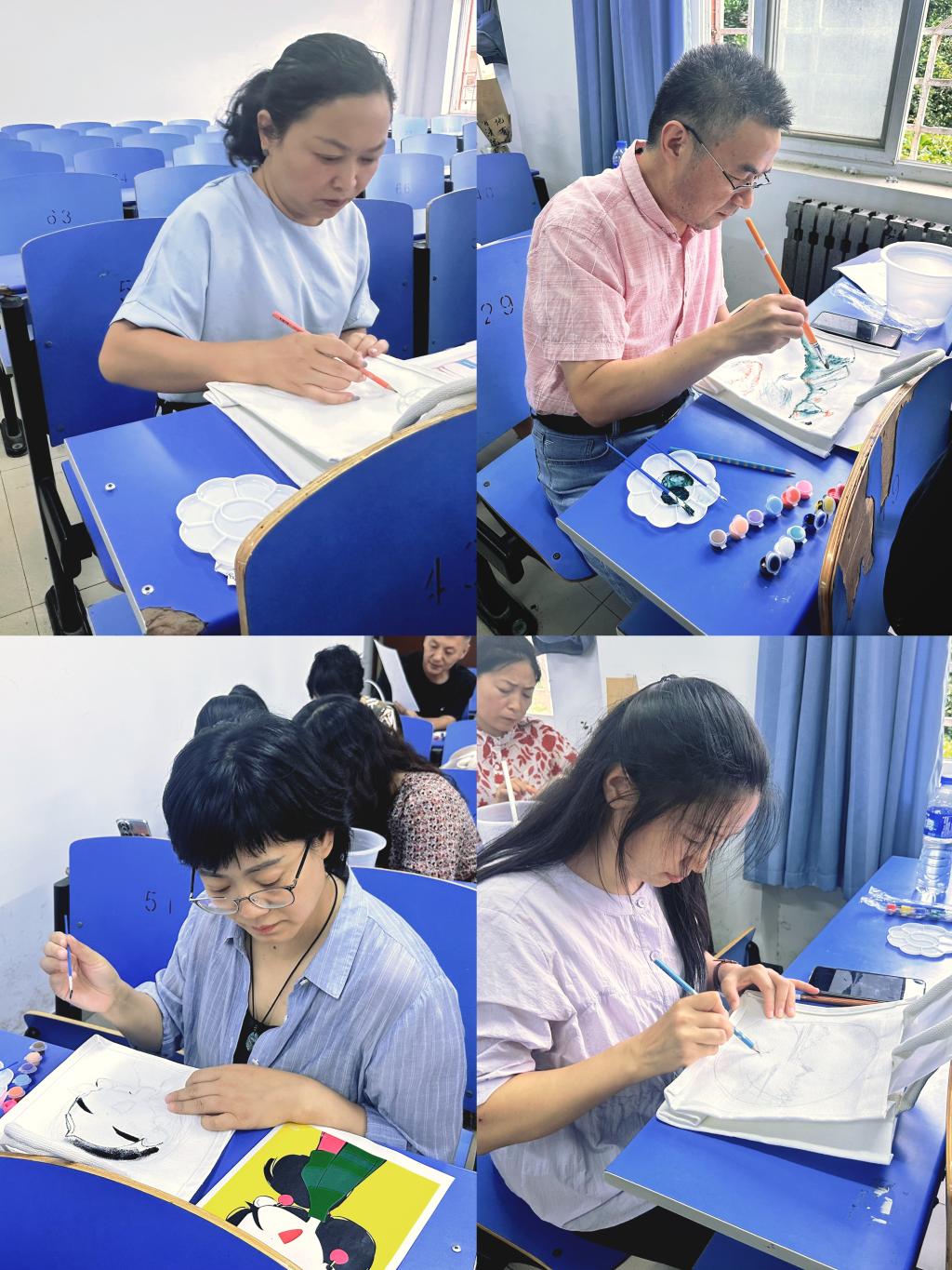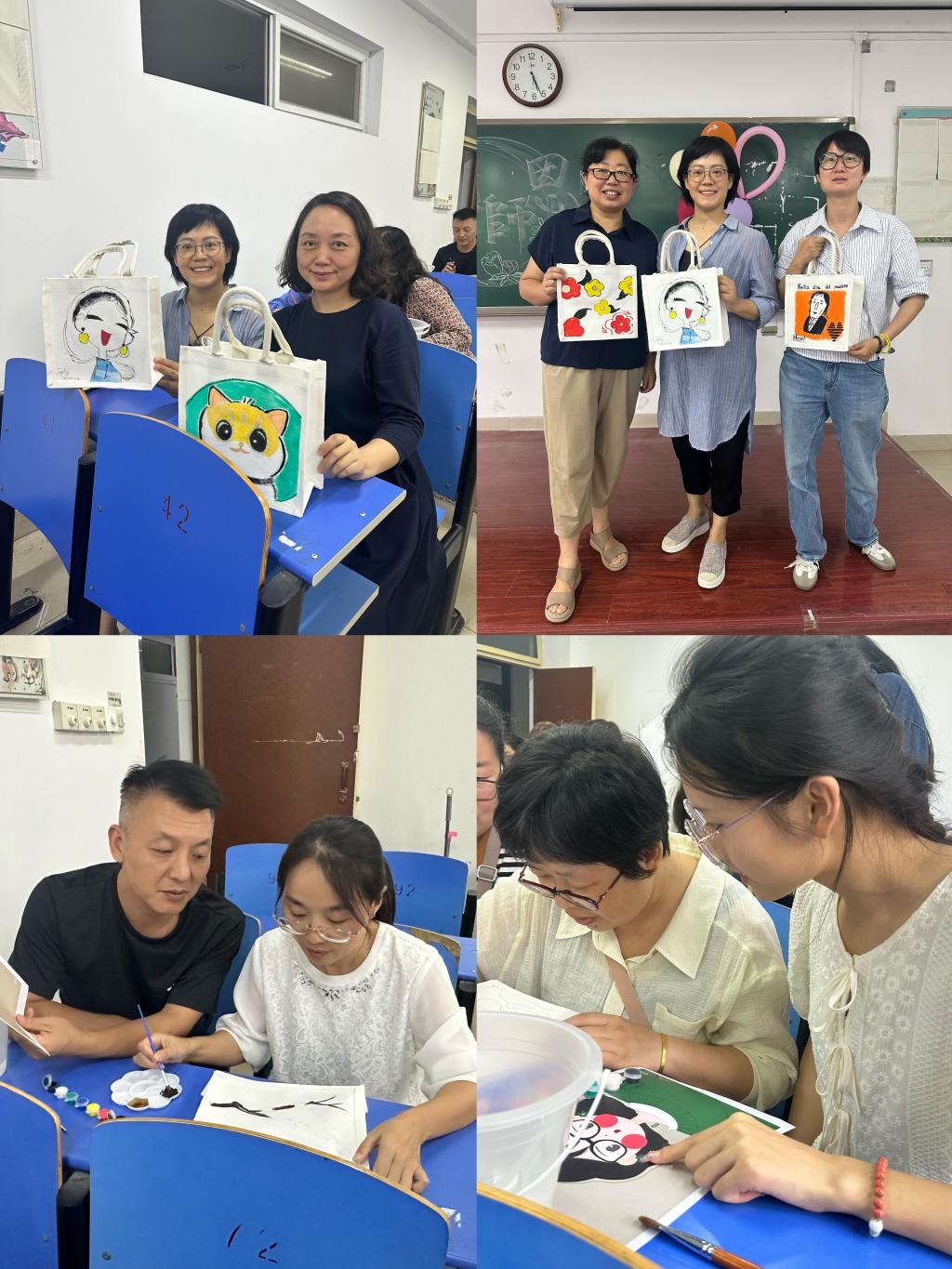 活动现场热闹非凡,充满了温馨的氛围。在专业老师的指导下,大家拿起画笔,全神贯注地投入到创作中。有的老师以美丽的花朵为主题,用细腻的笔触勾勒出一朵朵娇艳的鲜花,仿佛在诉说着教育事业的美好与灿烂;有的老师则选择了可爱的动物图案,憨态可掬的形象跃然包上,展现出老师们内心的童真与温暖。