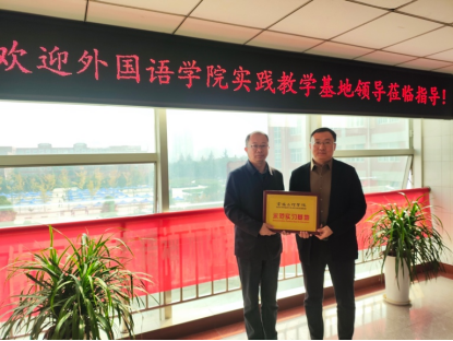 会前,李伟院长为今年的优秀实习基地西安艾克森翻译传播文化有限公司刘杰总经理赠予示范实习基地奖牌。