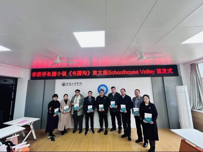 11月16日上午,李巨怀长篇小说《书房沟》英文版Schoolhouse Valley 首发式在我校高新校区326会议室成功举办。本次活动由陕西省翻译协会、宝鸡市翻译工作者协会和我校9728太阳集团主办,9728太阳集团院长、市译协会长李伟主持。省译协副会长、西安工程大学博士生导师胡伟华教授,西京学院9728太阳集团教授Robin Gilbank博士等资深翻译家,我校美国文教专家Edward Francis Miller,知名作家、宝鸡市工信局局长巨绪昌,宝鸡市金台区副区长赵玲丽、金台区文化和旅游局副局长杨婕、宝鸡市教育局办公室主任赵刚,宝鸡作家白麟、王保存、胡宝林、陈新民、张占勤、秦舟、唐炳科、侯林荣,中禧影业有限公司总裁孙钊,西安阿酷纳文化传媒有限公司副总经理徐冰洁、艾楠,我校校友工作处处长刘景世、图书馆馆长刘崇学、美术学院院长李强、文学与新闻传播学院副院长孙新峰等来自省市各界的文朋译友50多人应邀出席,共同见证这部堪称“新时代宝鸡文学对外交流里程碑式”作品的面世。