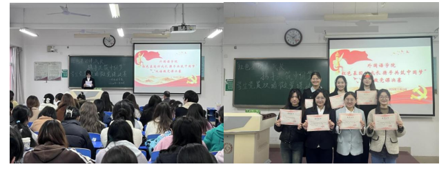 苏文军老师从选手的选题、讲课技能、汉英翻译技巧等方面对比赛进行了点评,鼓励学生党员和入党积极分子继续加强专业学习和思政锻炼,夯实英语专业基础,不断提高服务国家建设的能力。最终学生第一党支部、学科教学(英语)专业陈淑芳荣获一等奖,杨莹莹、杨倩茹、刘桉彤、刘佳欣等8名同学分获二、三等奖。