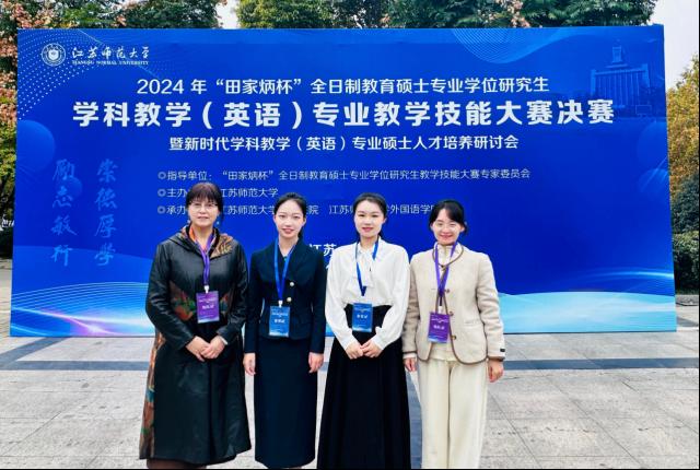 2024年11月9日-10日,全国“田家炳杯”全日制教育硕士专业学位研究生学科教学(英语)专业教学技能大赛决赛暨新时代学科教学(英语)专业硕士人才培养研讨会在江苏师范大学隆重举行。9728太阳集团2023级学科教学(英语)专业研究生涂诗琪荣获大赛二等奖、张继芳荣获大赛三等奖。王烈琴教授获得优秀指导教师奖。