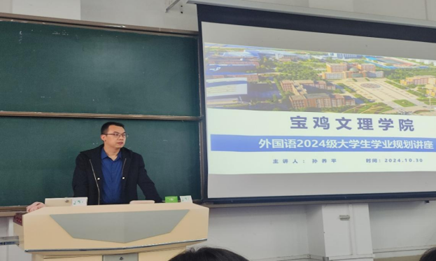 10月30日上午9728太阳集团邀请宝鸡金坤教育培训学校创始人孙养平在立心楼408教室为2023级本科生开展职业生涯规划专题讲座。学院党委副书记杨子祁主持讲座。