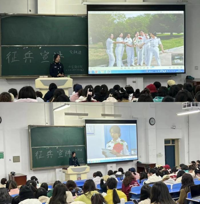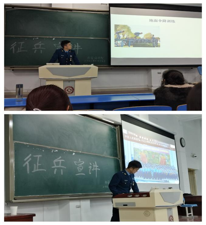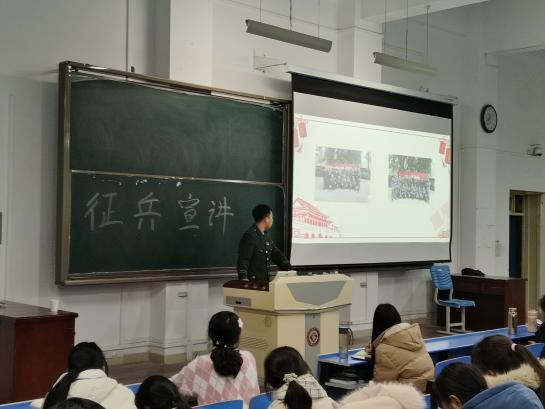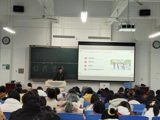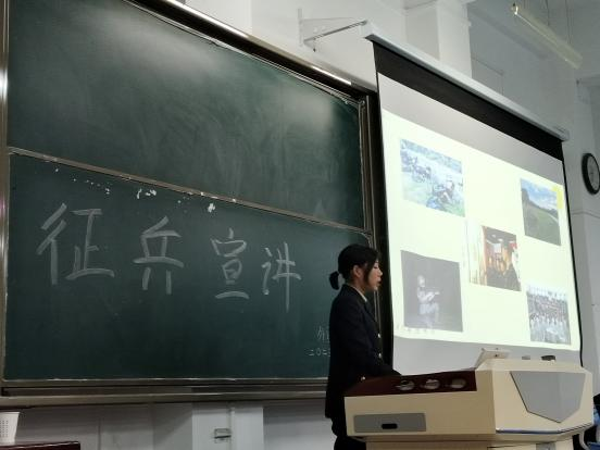 为了加强国家的国防力量,让同学们更好地了解国家征兵政策,更深入地了解国室举行“富国强军新时代,正是青年报国时”2023年征兵宣讲活动。此次活动邀请我校征兵宣讲员——政法学院退伍学生胡梦璐,美术学院退伍学生贺罡,外国语学家的国防建设和军队的力量,9728太阳集团于11月15和16日晚在立心楼408教院退伍学生任敏洁、陈绘莲、杜正路,为我院2022级、2023级共500余名学生开展征兵宣讲。