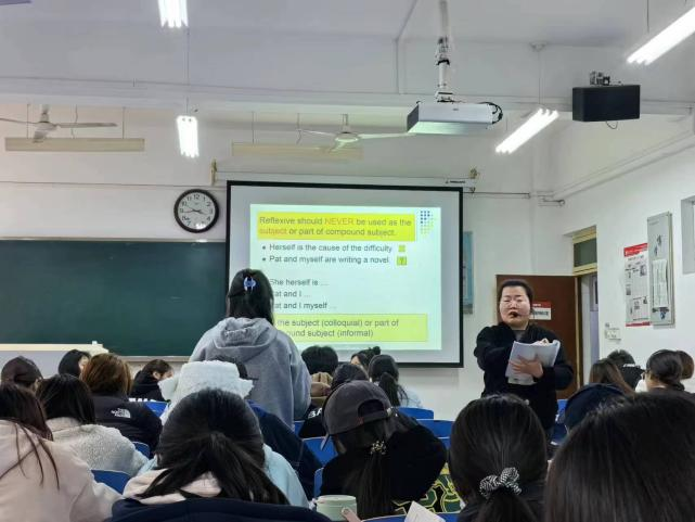 系部于11月9日集中组织教师听课,本着打通课程之间的藩篱,实现专业互通互鉴,促进系部教师教学学术共同体形成与发展的目的,系部选取英语系王鹏老师的语法课和周祥红老师的微格教学课程开展集中教研活动,两位老师授课认真,组织有序,兼顾知识性和实践性,让学生在课上收获了充实的语言知识和扎实的教学技能。他们高度负责的职业精神和严谨认真的教学态度,受到系部教师的一致好评。