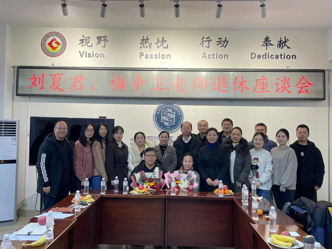 1月19日上午,学院在立心楼419会议室召开刘夏君、梅争卫老师退休座谈会。校党委教师工作部副部长、人事处副处长王能辉,学院党政领导班子、师生代表等参加了座谈会,会议由院工会主席苏文军主持。