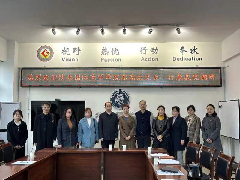 2023年3月22日,陕西国际商贸学院文学与教育学院副院长赵瑞、各专业骨干教师、学校人力资源处史阿品老师等一行9人来我院进行调研、交流,我院院长李伟教授以及相关领导和老师参加了此次交流活动。