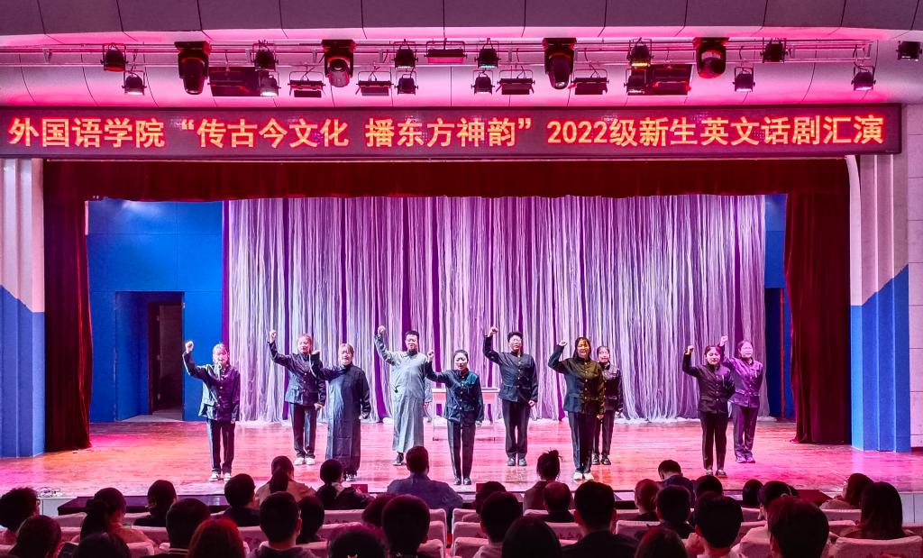 汇演以舞蹈《落花情》拉开序幕。2022级的同学们用外语演绎了《西游记》《花木兰》《红色征途》《缘起丝绸》《桂梅》《金陵十三钗》《白衣执甲,丹心为矛》等纵贯古今的故事,诠释了中华民族战胜一切“敌人”的精神力量,将中国传统文化和专业特色深度融合,给观众带来了一场中西文化碰撞的舞台盛宴。本次汇演主题明确、立意深远,展示了同学们良好的演技和专业水平,赢得了现场观众的掌声和喝彩。