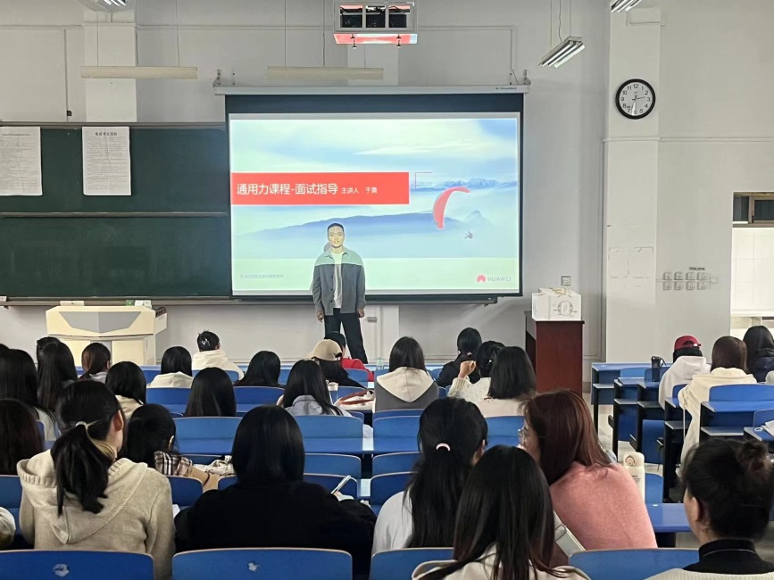 会上,于昊从面试类型介绍、面试前准备、单面面试技巧和群面面试技巧4个方面进行讲述,从面试官的角度讲述用人提示同学们怎样的应聘者才是用人单位真正青睐的。同时与到场同学进行互动,针对具体问题开展有针对性的建议。随后,华为慧通公司进行现场宣讲,开展专场招聘。