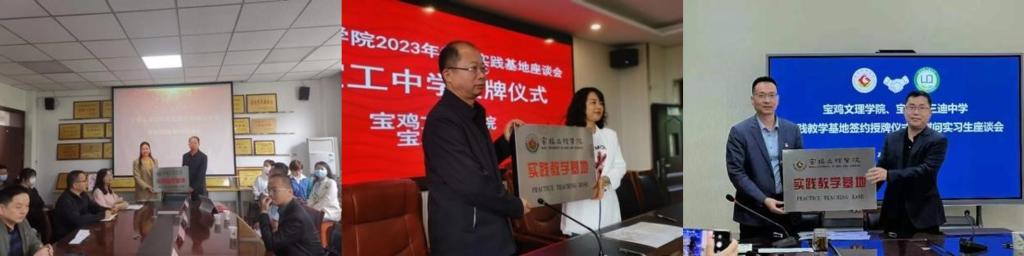 在走访各个实习基地时,学院领导与各个实习学校的领导和实习生进行了座谈,了解实习生在各实习点的工作、学习及生活情况并倾听实习生代表及指导教师发言。实习学校的领导表示非常重视本届学生的实习工作,配备了经验丰富的任课老师和班主任指导老师,并对我校2020级本科师范实习生在实习期内的表现给予了高度的评价。实习学校反馈实习生能够遵守实习学校规章制度,按时上下班;教学工作认真负责,听课备课充分;沟通能力强,主动请教指导教师解决问题;积极参与实习学校各项活动。期间学院院长李伟和教务处副处长周喜华分别代表学校与今年三所新建实习点新福园中学、宝工中学、三迪中学进行了实践教学基地签约与授牌仪式。