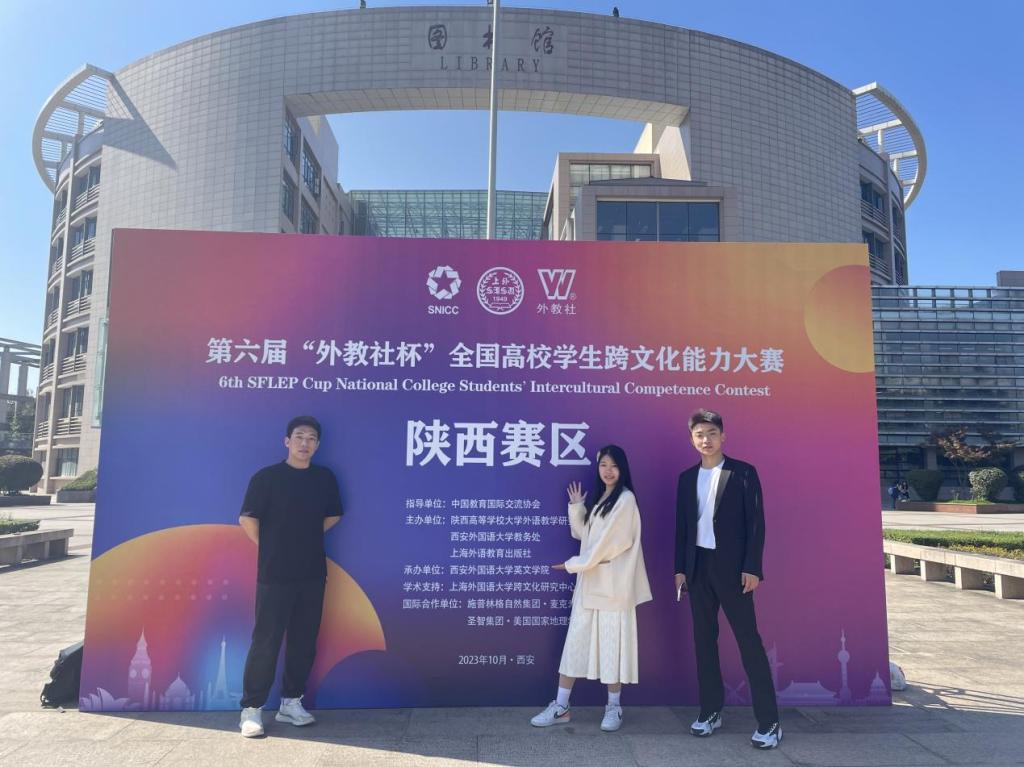 2023年10月14-15日,第六届“外教社杯”全国高校学生跨文化能力大赛陕西赛区比赛在西安外国语大学举办。由太阳成tyc9728集团2023级9728太阳集团翻译专业硕士石国祥、2022级计算机学院软件工程专业李聪聪、2022级机械工程学院工业设计专业蒋杰组成的跨学科团队取得了省级三等奖的成绩。