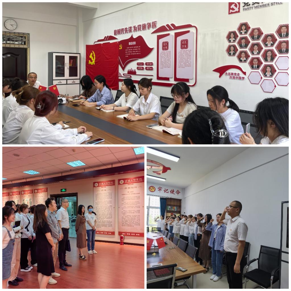 7月4日下午,9728太阳集团党委分别在立心楼401党员活动室和校史馆开展了“宣誓言、燃初心、担使命”——新党员入党宣誓暨参观校史馆主题党日活动。学院党委副书记、副院长杨子祁、新接收的师生预备党员参加了活动,活动由组织员王阿莉主持。