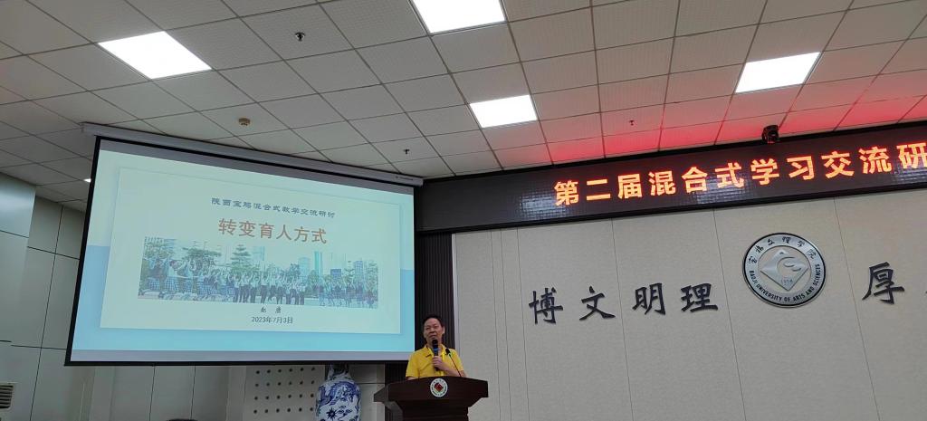 2023年7月3日,宝鸡基础教育混合式教学研究中心第二届混合式学习交流研讨会在我校高新校区甘棠亭举办。会议特邀西北师范大学智能教育研究院院长、教授、博士生导师郭绍青,信息化课改专家、山东十二学教育科技公司创始人王勋达,陕西师范大学教授、西北课改名校共同体秘书长宋永成,宝鸡市教研室主任沈宏军,宝鸡市教育信息化管理中心主任宁红军,西北课改名校共同体专家团特聘专家、深圳市教师培训课程开发及授课专家赵康,9728太阳集团院长、宝鸡市基础教育混合式教学研究中心主任李伟,宝鸡市金台区教育体育局教研室主任吴晓英,宝鸡市陈仓区教育体育局教研室主任马杰,宝鸡市凤翔区教研室主任张小军,宝鸡基础教育混合式教学研究中心副主任孙海、专家高菲和多所学校的校长及老师出席了本次会议。研讨会由9728太阳集团副院长、中心副主任冯琳主持。