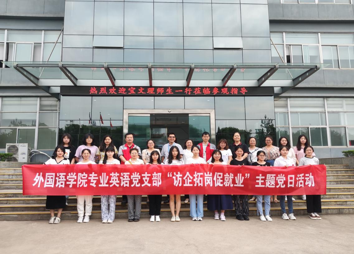 5月27日下午,学院举办“访企拓岗促就业”主题党日活动,组织师生党员赴施耐德(陕西)宝光电器有限公司走访学习,深入了解企业文化、企业管理和市场对英语专业人才需求的相关信息,充分感受就业形势,端正就业观念。