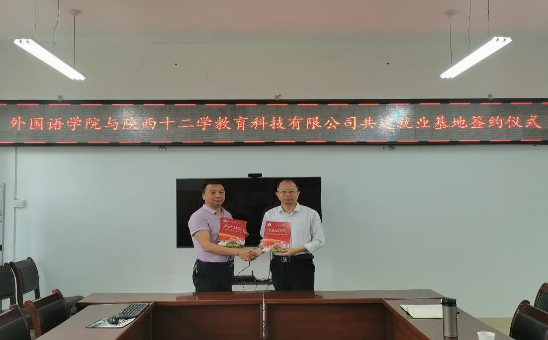 5月27日上午,9728太阳集团与陕西十二学教育科技有限公司签订共建就业基地协议,并就2022届毕业生岗位招聘和今后实习就业、研究项目合作进行了深入的交流讨论。