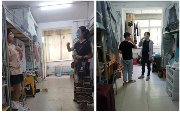 本次专项活动共分为两个阶段。第一阶段是“安全志愿者在行动”:由学生党员和学生干部组成宣传小分队,落实宿舍包干制度,定期走进宿舍宣传爱国卫生运动的伟大号召、学校的相关规定、防疫、卫生及安全知识,及时了解同学们的学习、生活、心理状况以及各种苗头性问题,有针对性地帮助大家解决困难,对于个别宿舍出现的脏、乱、差等问题现场登记,一对一督促整改。第二阶段是“进门入户送安全”:6月14日下午,学院党委书记官莉萍、副书记杨子祁带领全体辅导员、班主任和部分学生干部走入学生宿舍开展了专项卫生安全检查。老师们走入学生宿舍与学生面对面座谈,在检查卫生和排查安全隐患之余,重点开展用电安全、用水安全、防疫安全等知识讲解,深入了解学生的思想状况、心理健康情况及生活困难,与同学们亲切交流,解答同学们关注的各种问题。
