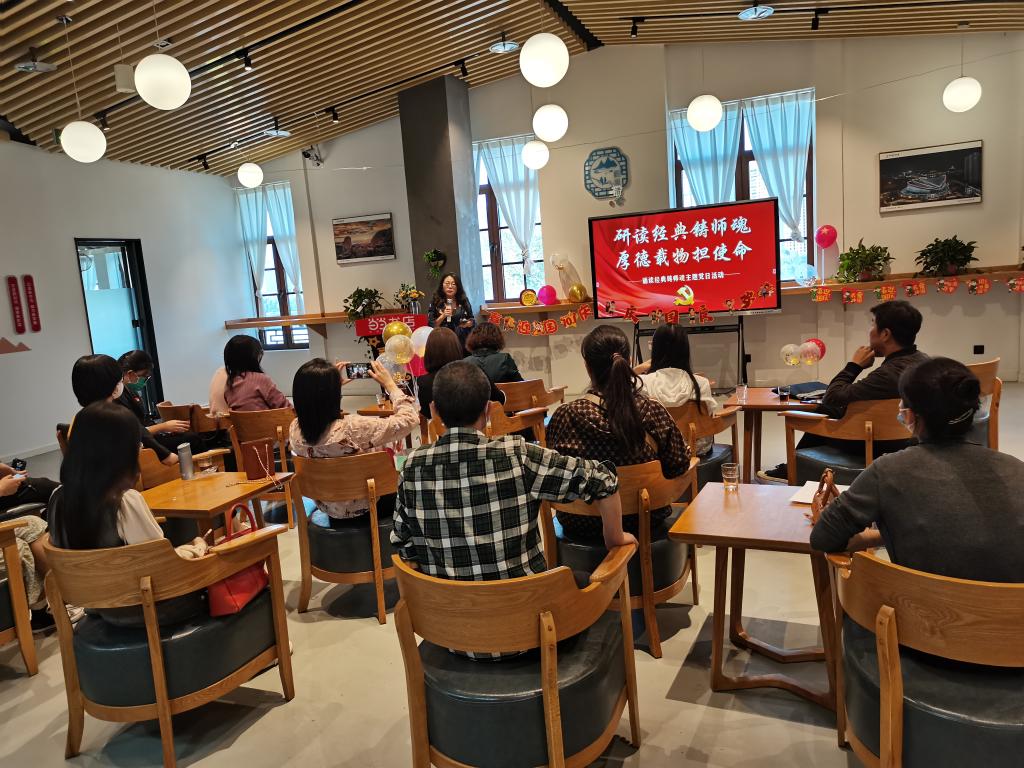 专题组织生活会结束后,两个支部开展了主题为“研读经典铸师魂、厚德载物担使命”的庆国庆特别活动。活动上,教工党员纷纷饱含深情,为伟大的祖国,为伟大的党诵读了红色经典诗词和爱国散文,研读了《习近平谈治国理政》(第四卷)节选篇目和习近平总书记关于纪律的经典语句,向党的二十大胜利召开和新中国成立73周年献礼。在《歌唱祖国》的激昂歌声中,活动圆满落下帷幕。