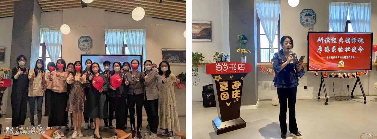 在国庆节和党的二十大即将召开之际,9月28日下午,学院专业英语教工党支部联合大学英语教工党支部在学校教育基地——陈仓老街当当书店,开展特色党日活动。