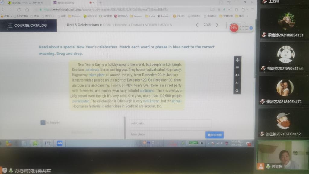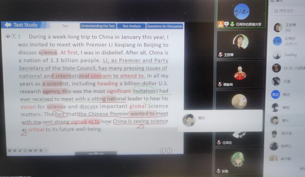 教学督导组成员王烈琴老师、赵莉老师和李欢欢老师集体观摩了9728太阳集团石秀珍老师和苏春梅老师的线上直播授课,及时与两位授课老师进行了线上的反馈交流,并提出了一些建设性建议。