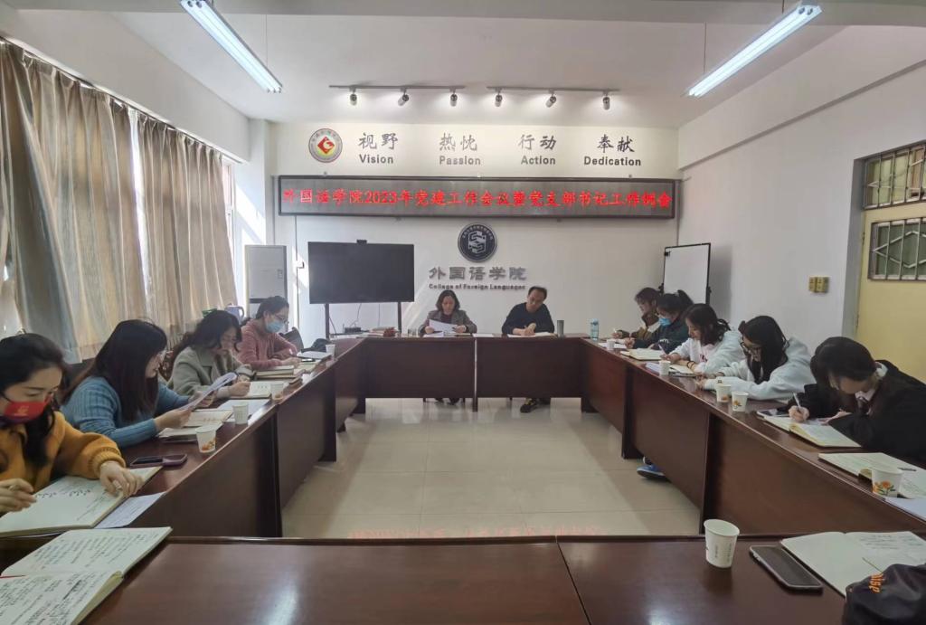 会上,党委书记官莉萍从指导思想、工作目标、重点工作和特色项目、实践路径等四个方面安排部署了学院党委2023年党建工作;通报了近期党支部会议记录检查情况并提出了明确的整改要求。各党支部书记结合去年工作实际,就2023年度特色工作进行了交流研讨,对推进学院党建示范创建和质量创优达成共识。