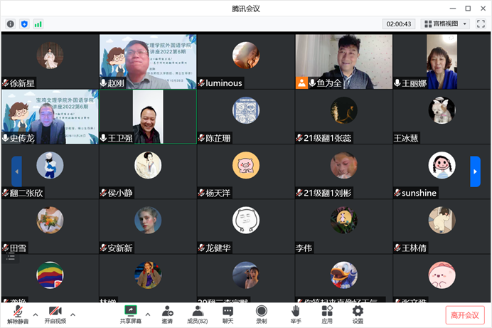 赵刚教授从“Translating China”讲起,引申到中国文化输出;从中外国家学术体系中的名词对比,讲到从中国汉语中的俗语翻译;从实际生活中的欢迎标语,讲到译者的专业能力。整场讲座旁征博引、深入浅出,通过各种翻译案例、实际经验,将翻译能力与双语能力的关联与不同,生动形象地向我院师生进行阐释,令人受益匪浅。赵刚教授还鼓励学生培养探究性学习能力,养成深入挖掘语言、研究语言的习惯,并将批判性思维、逻辑性思维应用于翻译过程,不盲从书本和权威。会后,翻译系师生踊跃提问交流,从学术素养培养、翻译能力提升等方面向赵刚教授请教,反响强烈。