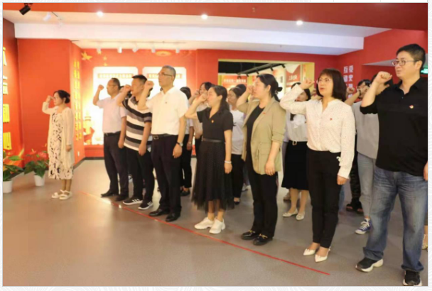 在西建非公党建学院,赵健和师生党员与西建集团党委书记、董事长冯西见一起参观了党史馆、初心馆、非公经济发展史馆、清廉馆等24个分展馆。通过文字、图片和视频资料,大家共同回顾了中国共产党成立以来领导全国人民在革命、建设和改革进程中取得的伟大成就;通过对中国优秀传统文化和时代楷模事迹的学习,大家自觉进行了一场廉洁教育。在党员宣誓馆,全体党员在英语专业党支部书记耿秀萍的带领下,重温了入党誓词,铿锵有力的宣誓声回荡在整个展厅。