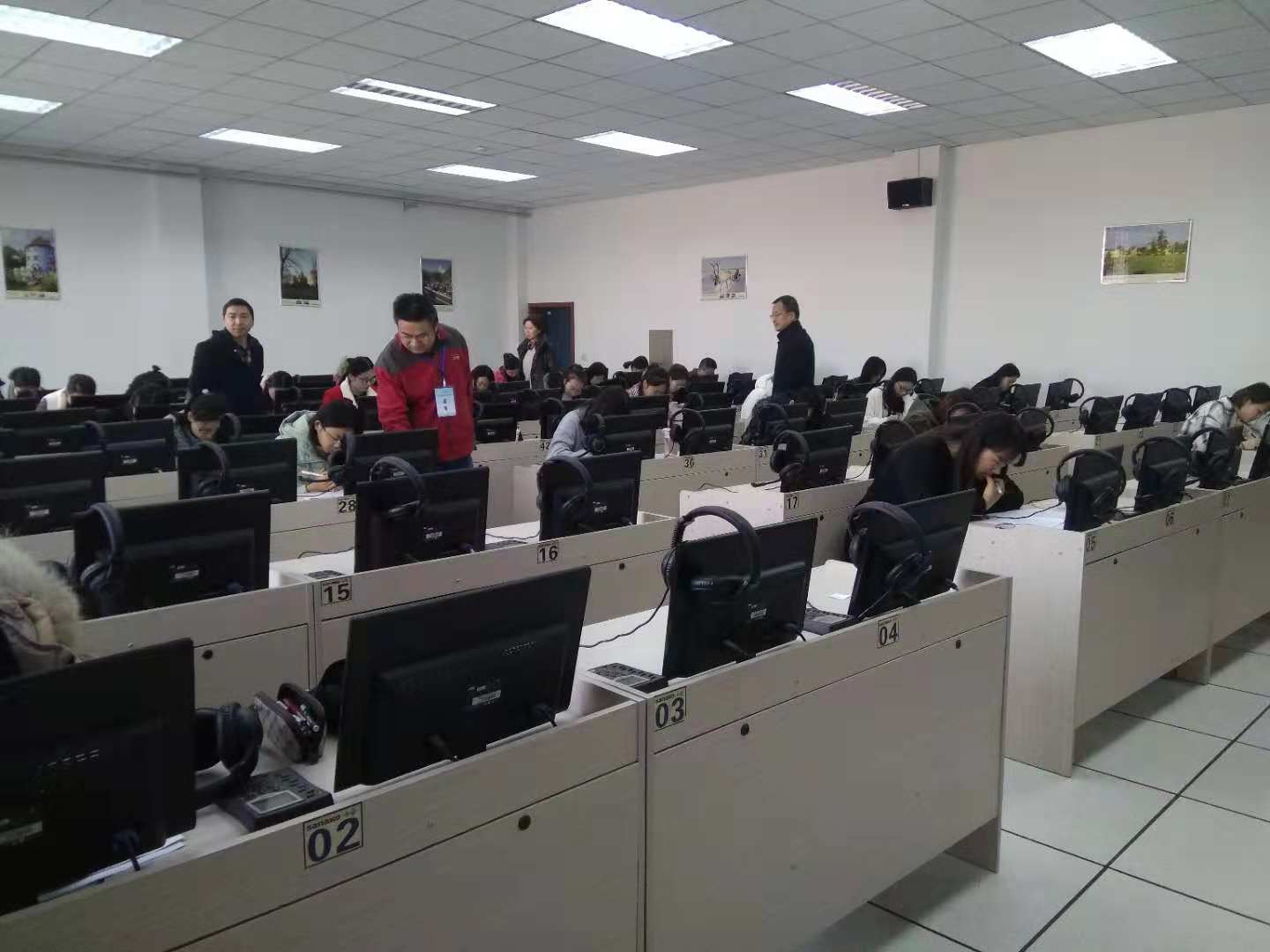由全国高等师范院校外语教学研究协作组、国家基础教育实验中心外语教育研究中心主办, 陕西高等学校大学外语教学研究会、陕西省高师院校外语教学与研究协作组承办、 延安大学9728太阳集团联合协办的2018年全国高师学生英语教师职业技能竞赛初赛(太阳成tyc9728集团赛区)于11月18日在我校尚能楼顺利完成,本次竞赛我院共有56名学生报名参加,考场秩序井然。
