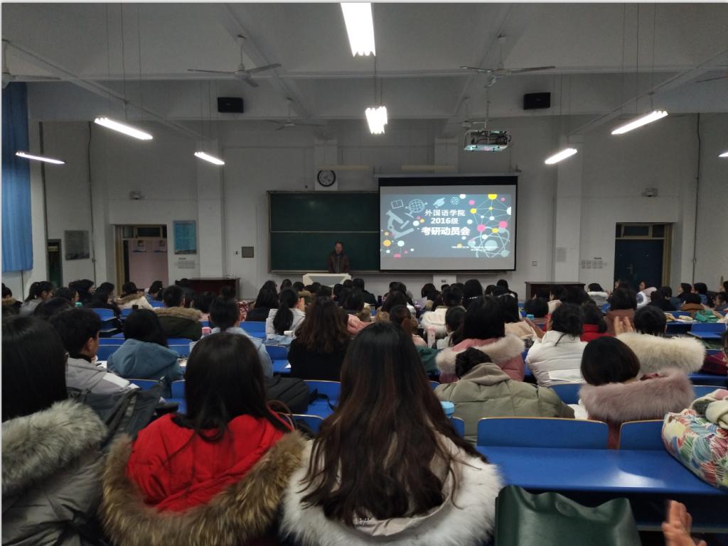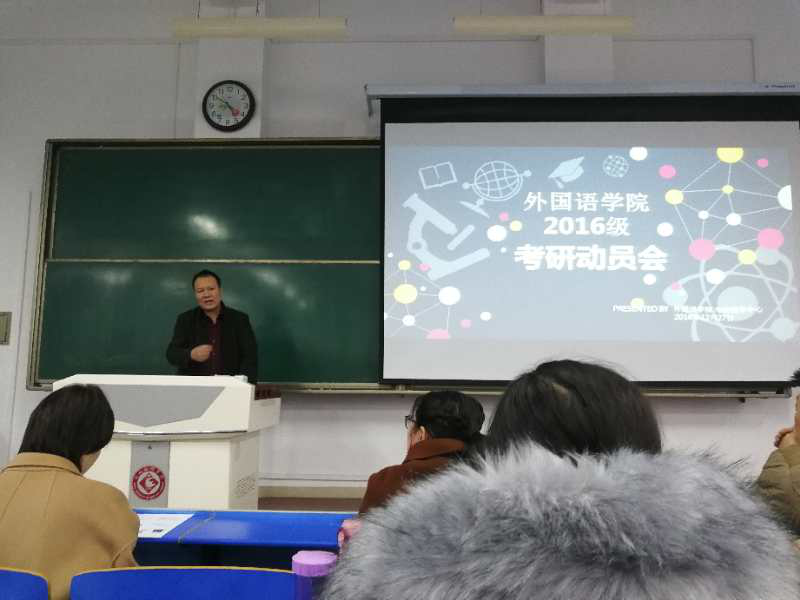 动员大会上王卫强教授做了热情洋溢的动员讲话,他指出考研是增强社会服务能力,提高学历层次,改善人生境遇的必然选择,考研过程中需要提前谋划、艰苦努力、久久为功,注意方法策略,并预祝大家考研成功。考研辅导中心副主任王宇珍老师分析了近年来外语专业面临的就业和考研形势并对学校、学科方向、专业选择给予指导。考研指导中心冯琳、耿秀萍、周祥红、刘敏、闫朝华等老师结合外语专业各个学科分别做了具体的说明和指导。在互动环节中,各位老师耐心回答了学生的疑问。