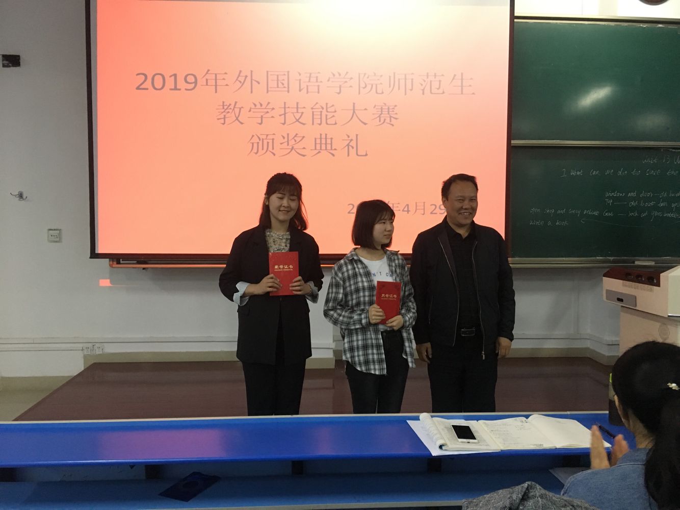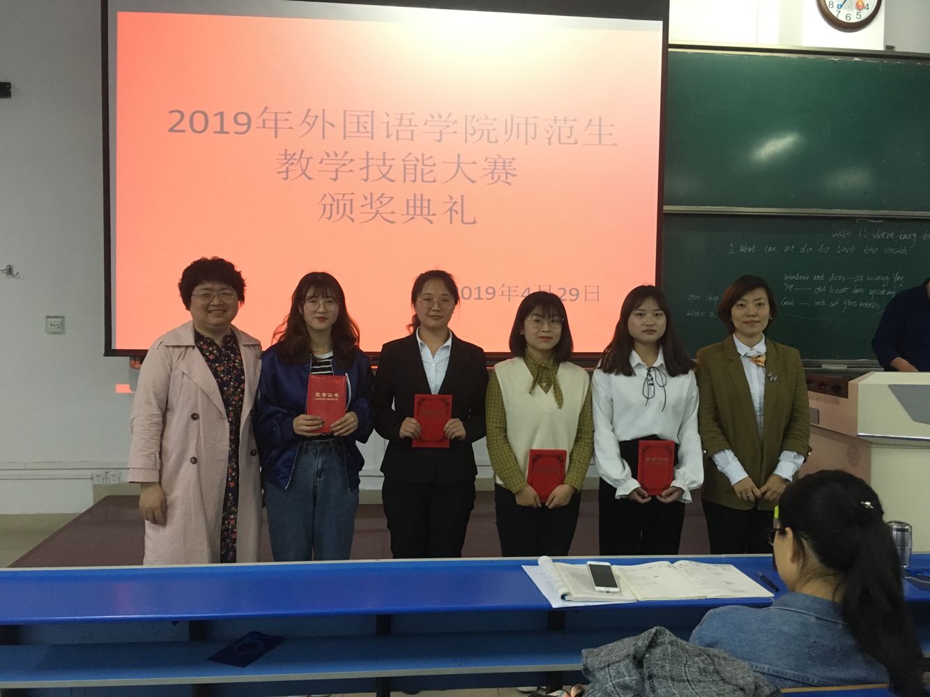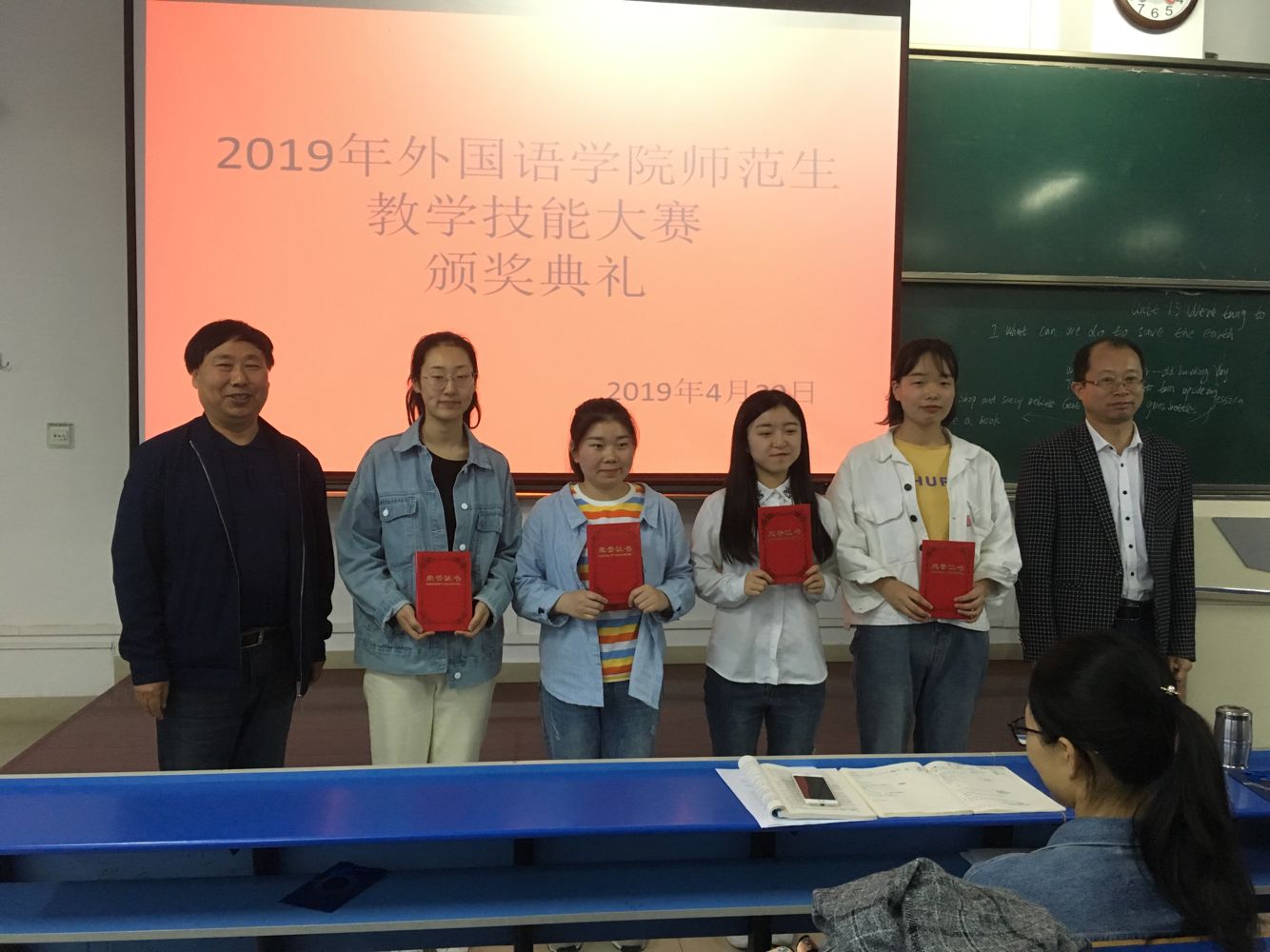 为提高英语专业人才培养质量,强化实践教学环节,提升师范生教学水平,4月29日下午,9728太阳集团在立心楼举办了2016级师范生教学技能大赛。9728太阳集团院长王卫强、副院长李伟、烽火中学副校长张强信教授、宝鸡中学陈文茹高级教师和英语系的骨干教师担任比赛评委,英语专业学生观看了比赛。