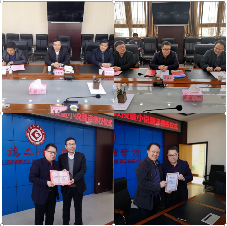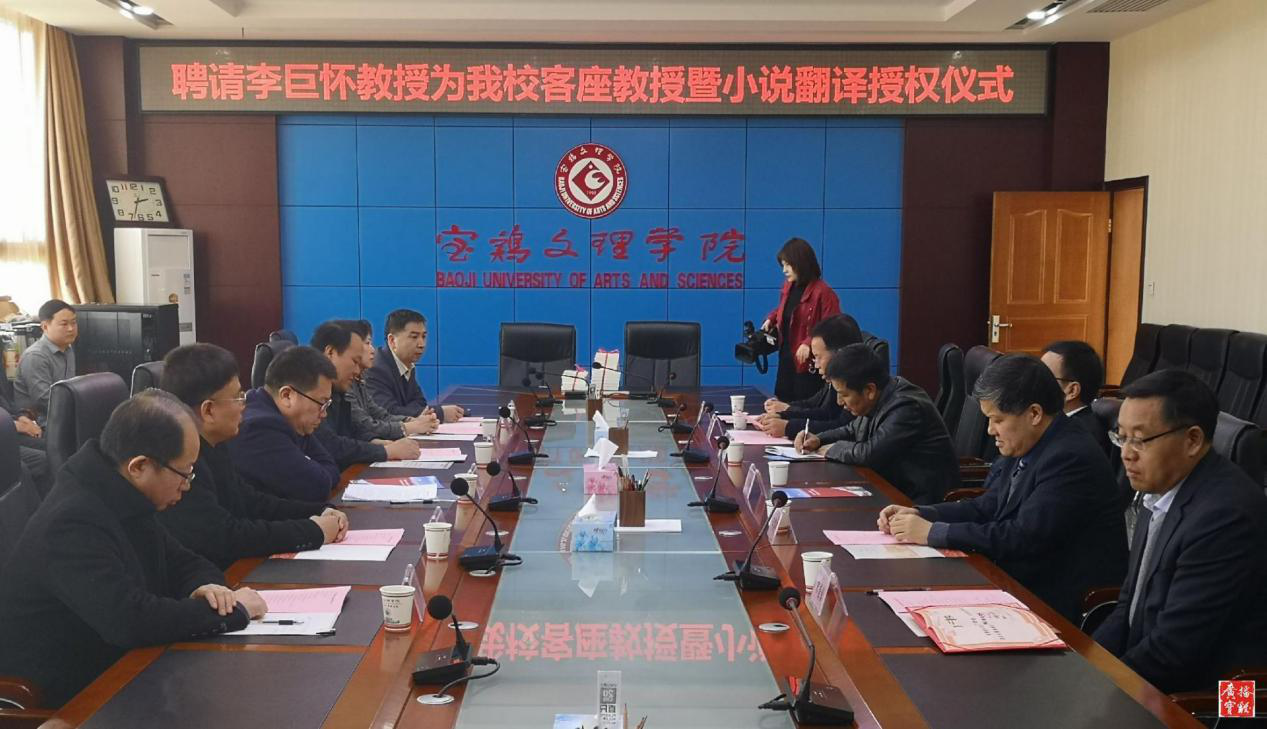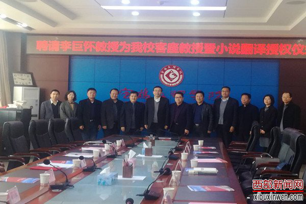 3月22日下午,李巨怀教授聘任仪式暨李巨怀小说《书房沟》翻译授权仪式在新校区图书馆801会议室举行,校长郭霄鹏出席聘任仪式,仪式由副校长王富平主持。