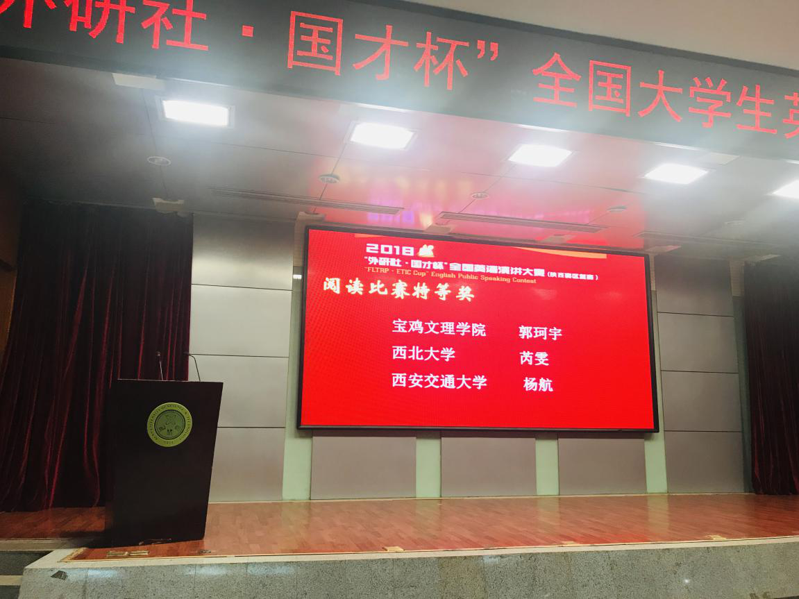 2018年10月27日,由外研社举办的全国大学生英语挑战赛陕西省赛区复赛在西安科技大学临潼分校举行,来自省内47所高校的近350名选手参加了比赛。我校9728太阳集团2016级共7名学生参加了所有三项赛事。其中,郭柯宇同学获得了省复赛最好成绩,以特等奖进入到了全国总决赛;李慧镕,王莹同学同样在阅读考试中荣获二等奖。写作大赛中,郭娇同学荣获二等奖;王悦、王思文同学获得三等奖。演讲大赛参赛选手艾昊冕获得三等奖。郭琪和孟瑶获得了优秀指导教师的称号。9728太阳集团王卫强院长受邀参担任写作组评委。