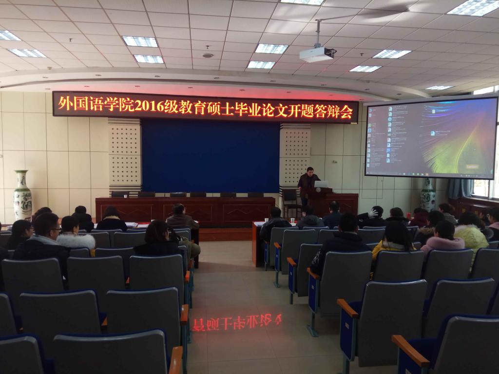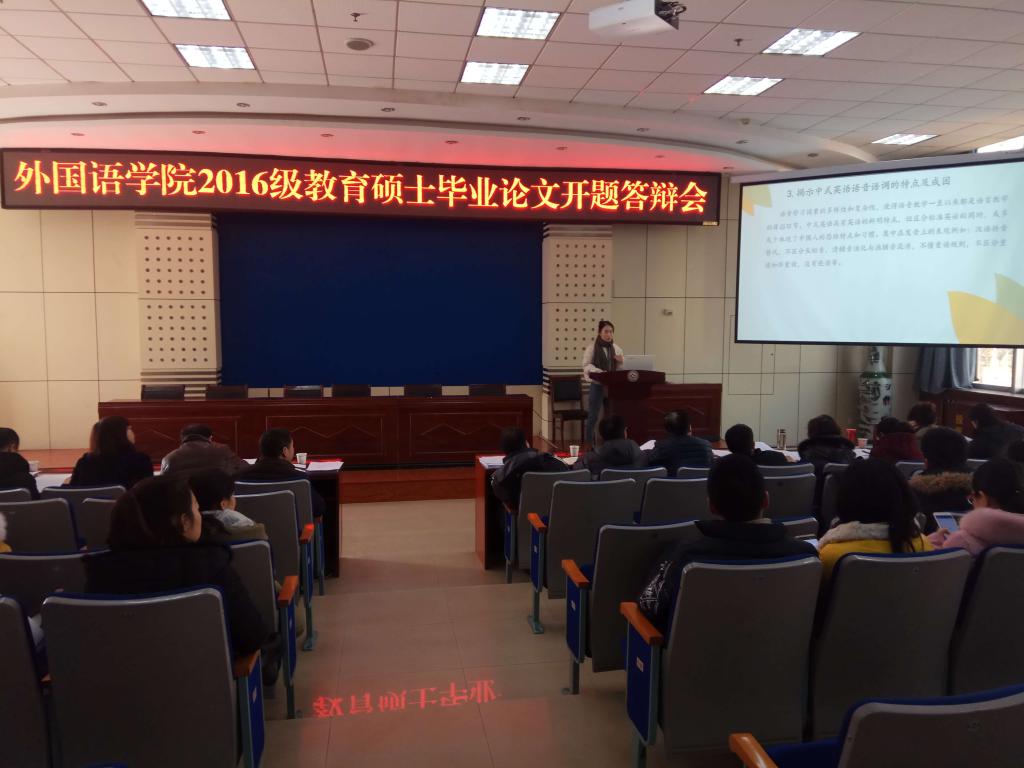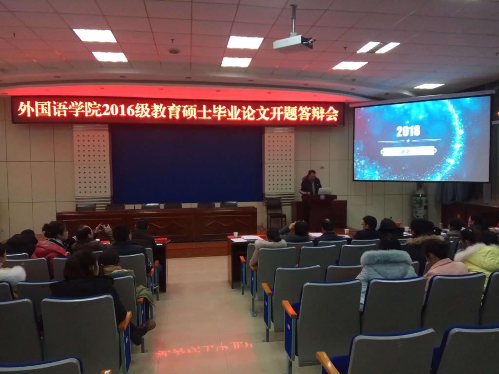 2018年1月11日下午,9728太阳集团2016级教育硕士开题答辩会在木铎厅圆满举行。会议由9728太阳集团科研副院长史传龙主持,院长王卫强、副院长李伟、外校专家宝鸡市教育局英语教研室主任任军利老师、宝鸡市烽火中学教学副校长张强信老师、九名研究生导师出任评审专家。2017级全体研究生进行了观摩学习。