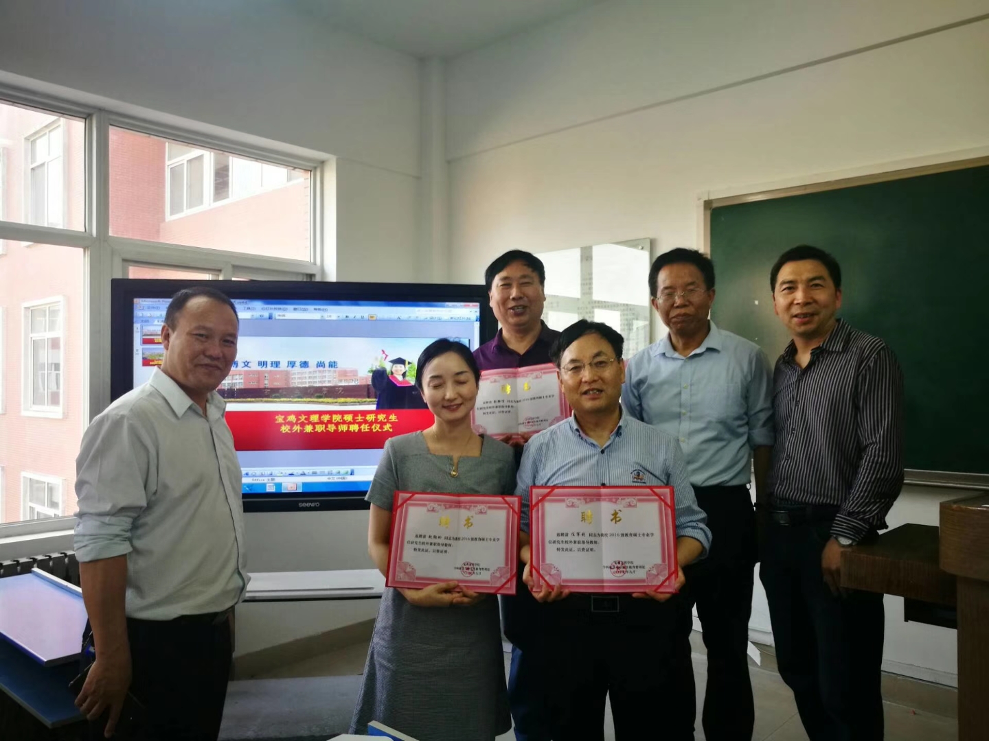 王卫强对宝鸡市教育局教研室副科长任军利、宝鸡市烽火中学教学副校长张强信,宝鸡市新建路中学省级学科带头人、高级教师赵陶玲等三名校外兼职导师做了介绍。