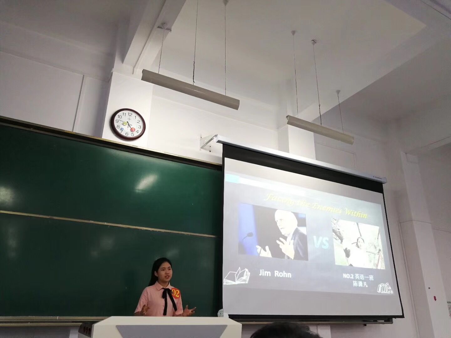 本次比赛分初赛与决赛两个部分,初赛以班级为单位,每位学生需从指定的十篇名人演讲中选定一篇进行模仿朗诵,由本班的基础英语教师评选出2-3名学生参加决赛。最终共18名选手参加了决赛。其中,丁炳阳和周宗良获一等奖,尚佳瑞等4名同学获二等奖,王晨育等6名同学获三等奖,陈潇凡等6名同学获优秀奖。助兴环节由大二学生和大三学生进行了仿诵演讲表演,最后,外教对于本次比赛进行了精彩的点评。