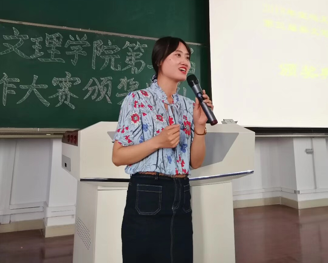 首先,外语国语学院侯小静、张乐两位教师对部分获奖作品从素材选择、篇章结构、语言语法等方面进行了精辟点评,指出改进之处并提出写作能力的建议。