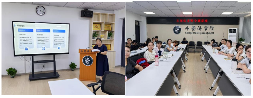 6月13日,宝鸡市金台区代家湾小学教师王亚红应邀在我校高新校区立心楼426教师为2024级英语优师专项的同学们做题为《小学英语课堂活动激发策略》的讲座。她基于自身多年来对英语教学经验的总结反思,首先指出英语学习的兴趣是学好英语的基本观点,要充分利用小学生对生活的好奇心来开展多样的教学活动。其次,在日常教学中,要坚持表扬为主,通过正向反馈来巩固学习成果。在教学方法方面,要以单词为基础,串联句子和语篇,同时将语言知识融入到简单的游戏之中以达到反复训练的目的。第三,针对学困生,要以发展的眼光对待他们,要给予更多的鼓励。同时要在课堂上对学困生进行因材施教,并在课上通过问题的设置进行分层教学,帮助学困生树立信心。第四,她强调要“建立包容有趣的课堂氛围,通过设立“无错日”“文化融入教学”“知识趣味呈现”“情境模拟实践”等方式,增加英语教学内容的趣味性和人文性。