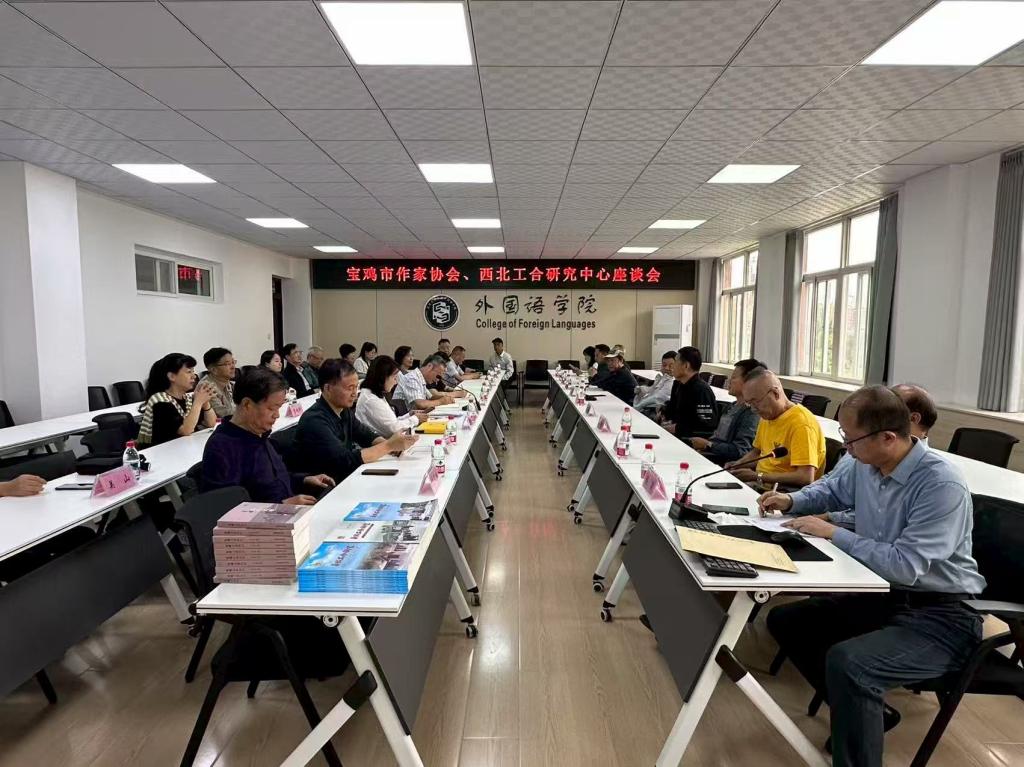 参观结束后,双方在立心楼426会议室举行座谈交流。9728太阳集团党委书记张小龙,院长、西北工合研究中心主任李伟教授,中心副主任、首席专家张占勤研究员,副书记张诗雪、副院长冯琳出席会议。张小龙对李广汉主席一行表示欢迎,并介绍了9728太阳集团的基本情况;李伟向作家们介绍了西北工合研究中心成立四年来的发展情况和未来思路。