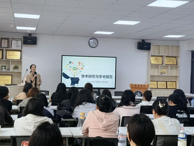 下午,学院学科建设与研究生教育发展中心主任薛韬为新生作了“学术研究与学术规范”专题报告。她强调科研诚信和规范写作的重要性,提醒同学们坚守学术底线,培养严谨治学的良好习惯。随后,中心副主任李燕、张笑围绕专业学习与研究方法,分享了论文写作和研究路径的宝贵经验,为新生提供了实用的学术指导。最后,申薇为新生开展了职业生涯规划教育,引导同学们树立长远职业目标,明确研究生阶段的努力方向。