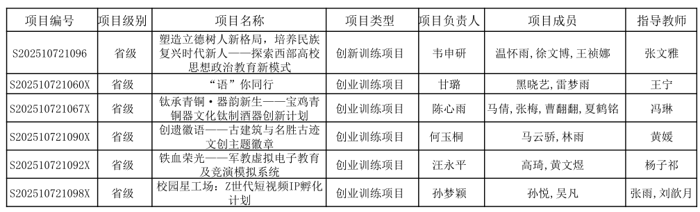 近日,学校公布了2025年省级大学生创新创业训练计划项目立项结果,我院学生主持的6个项目成功获批,其中包括5项创业训练计划项目、1项创新创业训练计划项目。