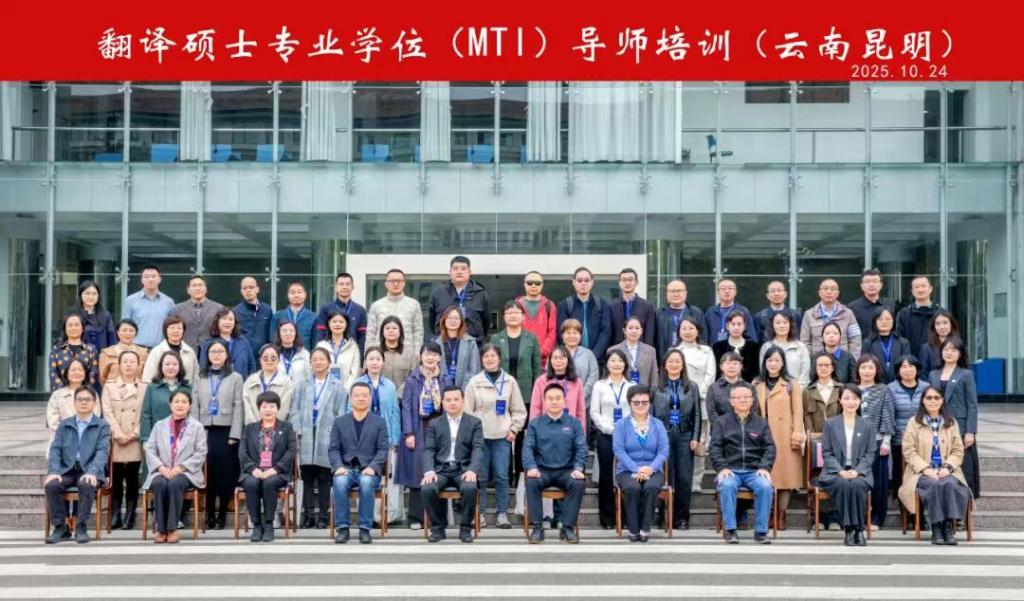 10 月 24 日至 26 日,由全国翻译专业学位研究生教育指导委员会(教指委)指导,中国翻译协会主办,昆明理工大学承办的翻译硕士专业学位(MTI)导师培训班在云南昆明顺利举办。来自全国20余所高校的近80位MTI学科负责人及骨干教师参训。我院学科建设与研究生教育发展中心主任薛韬和MTI硕士生导师王亚平老师参加了此次培训。