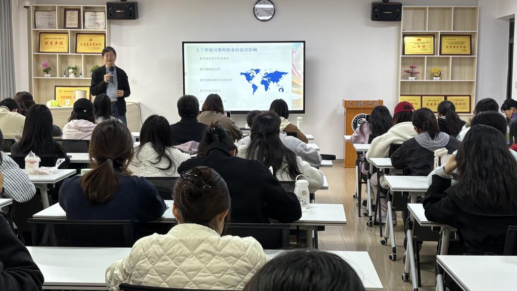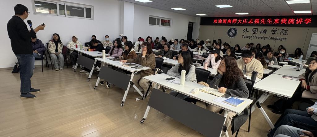 11月14日上午,闽南师范大学庄志强先生应邀为我院师生带来了题为《AI时代的教师角色重塑》的专题讲座,现场气氛热烈,互动频繁。