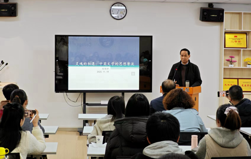 11月19日下午,西安外国语大学南健翀教授应邀莅临我院,以《灵魂的相遇:中英文学的思想潜流》为题开展专题讲座,吸引学院众多师生到场聆听、参与交流。现场互动热烈,学术氛围浓厚。
